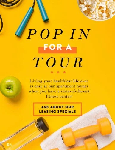 A healthy lifestyle awaits at ______ (apartment name). Join us on _______ (day) at _____ (time) for our _____ (yoga, pilates, HITT…) classes!