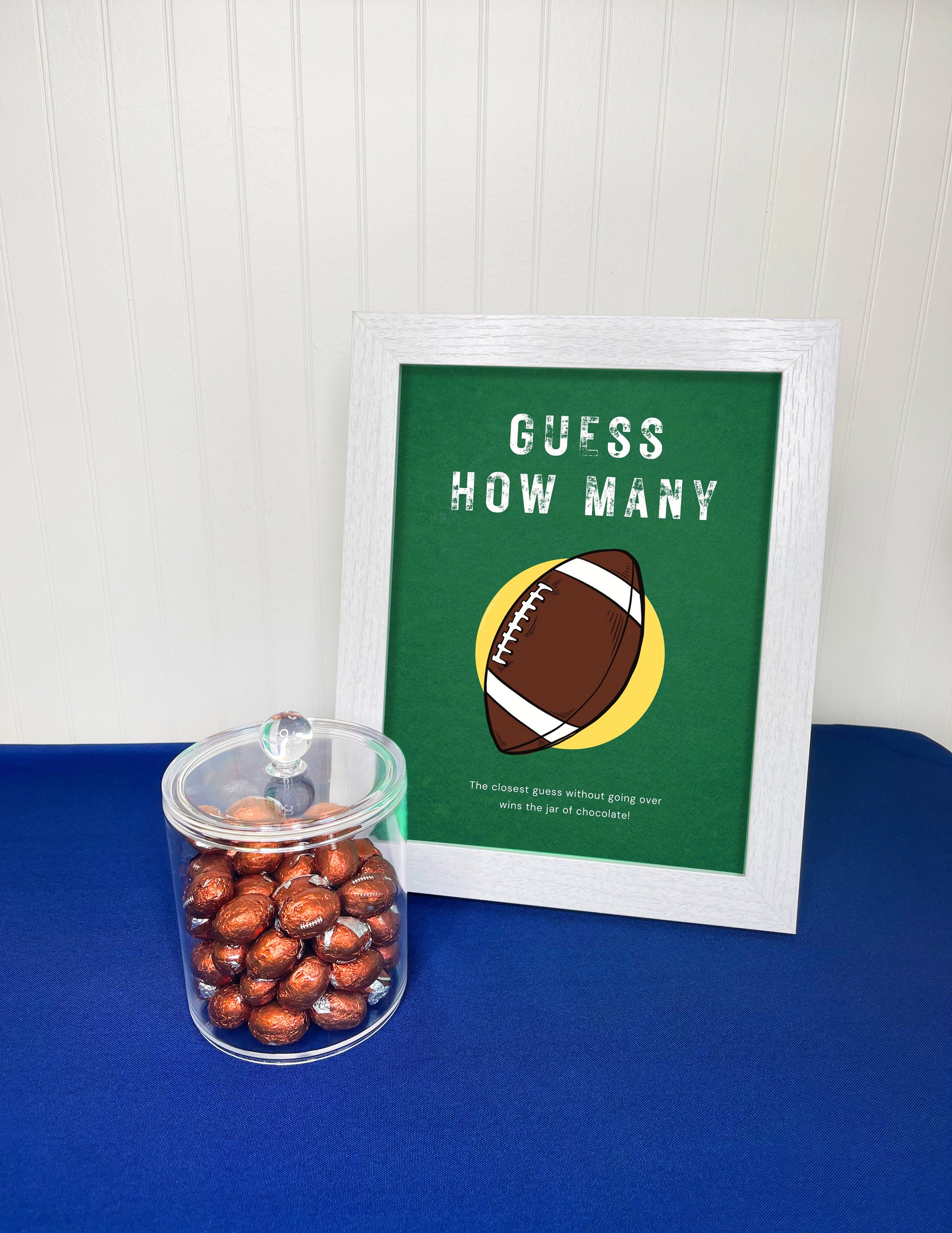 Can’t throw an all-out tailgate party? This touchdown of an event is always a crowd-pleaser! This delicious Guess How Many game is a quick and easy setup that features chocolate footballs!