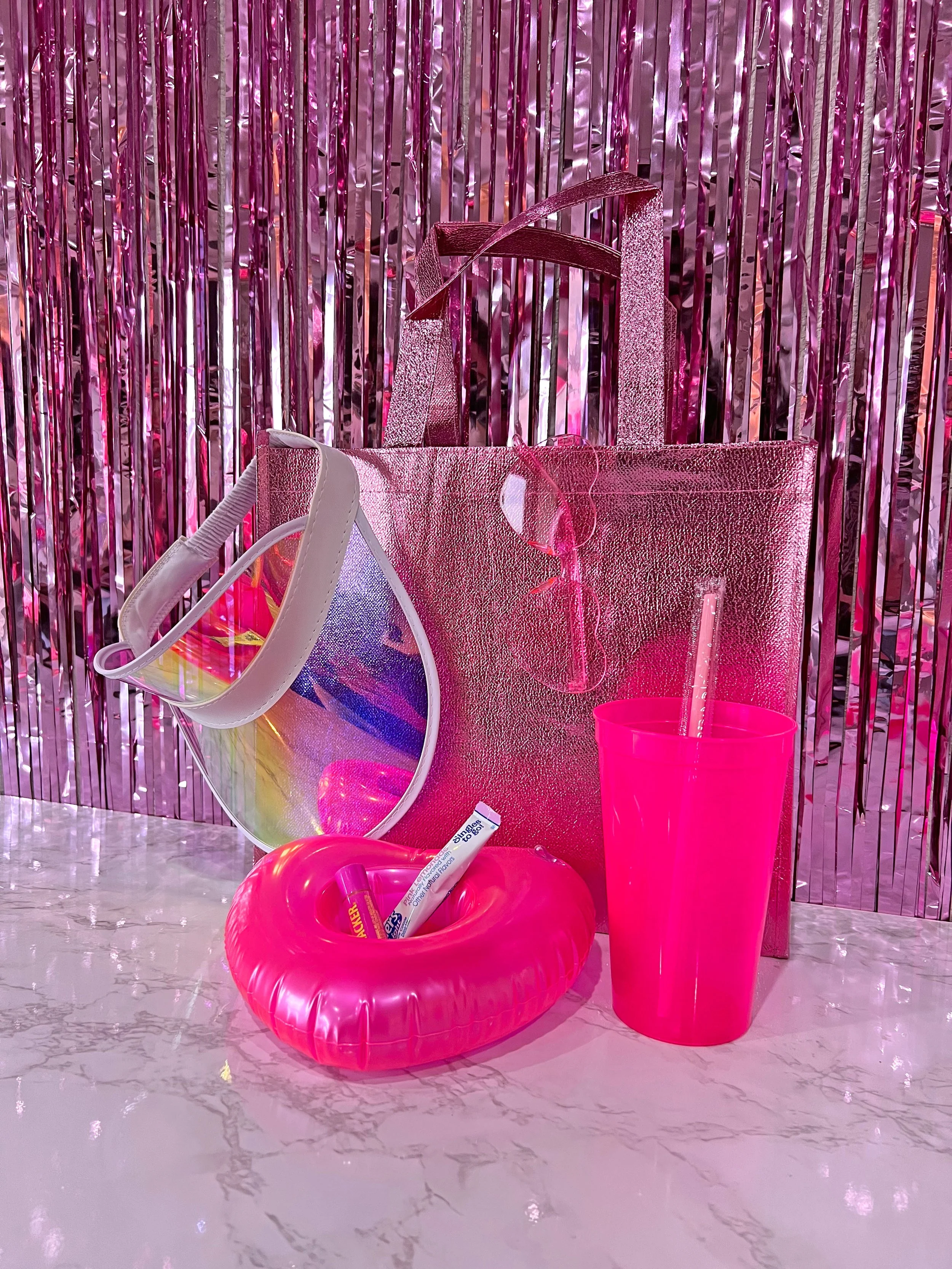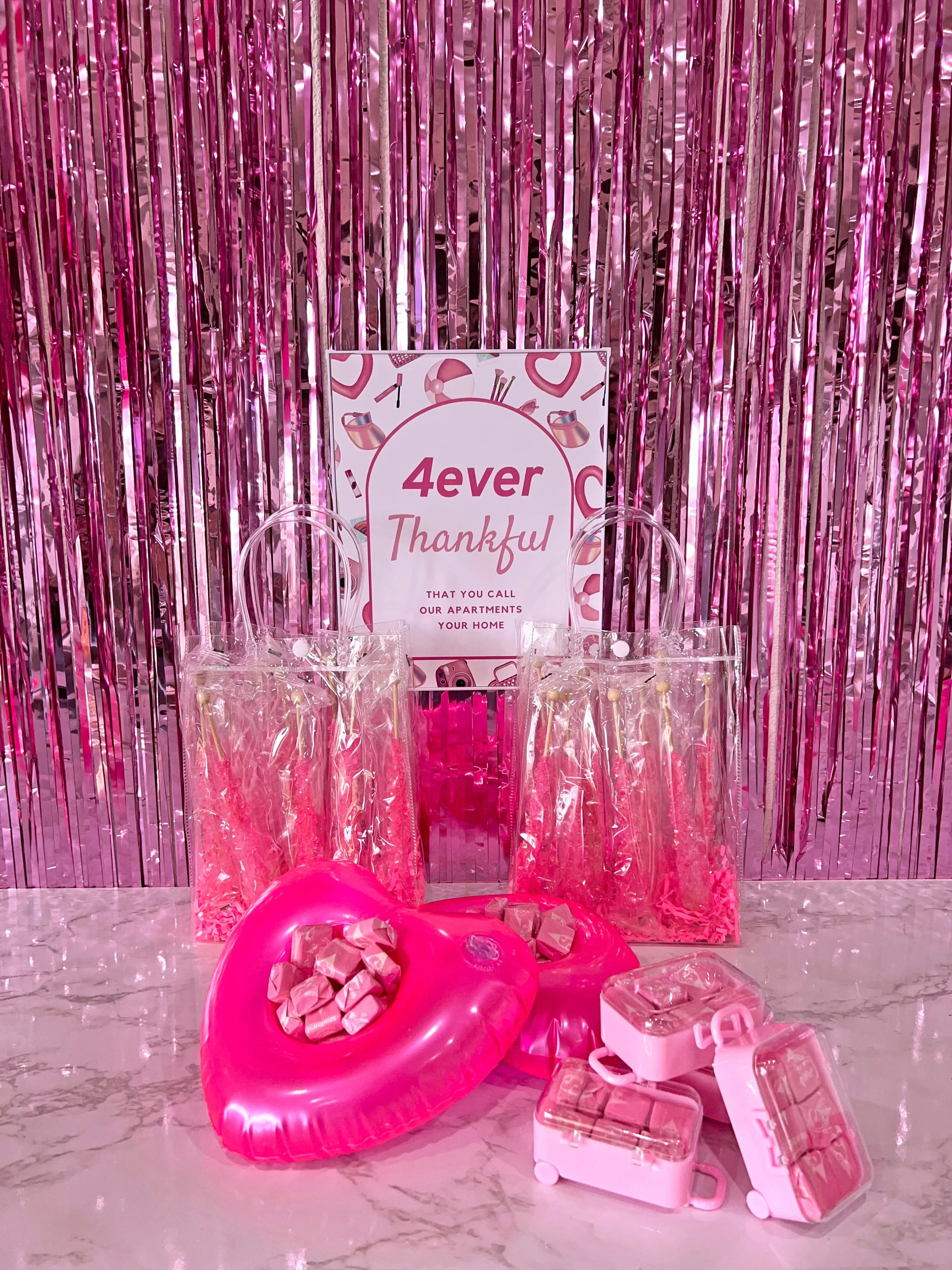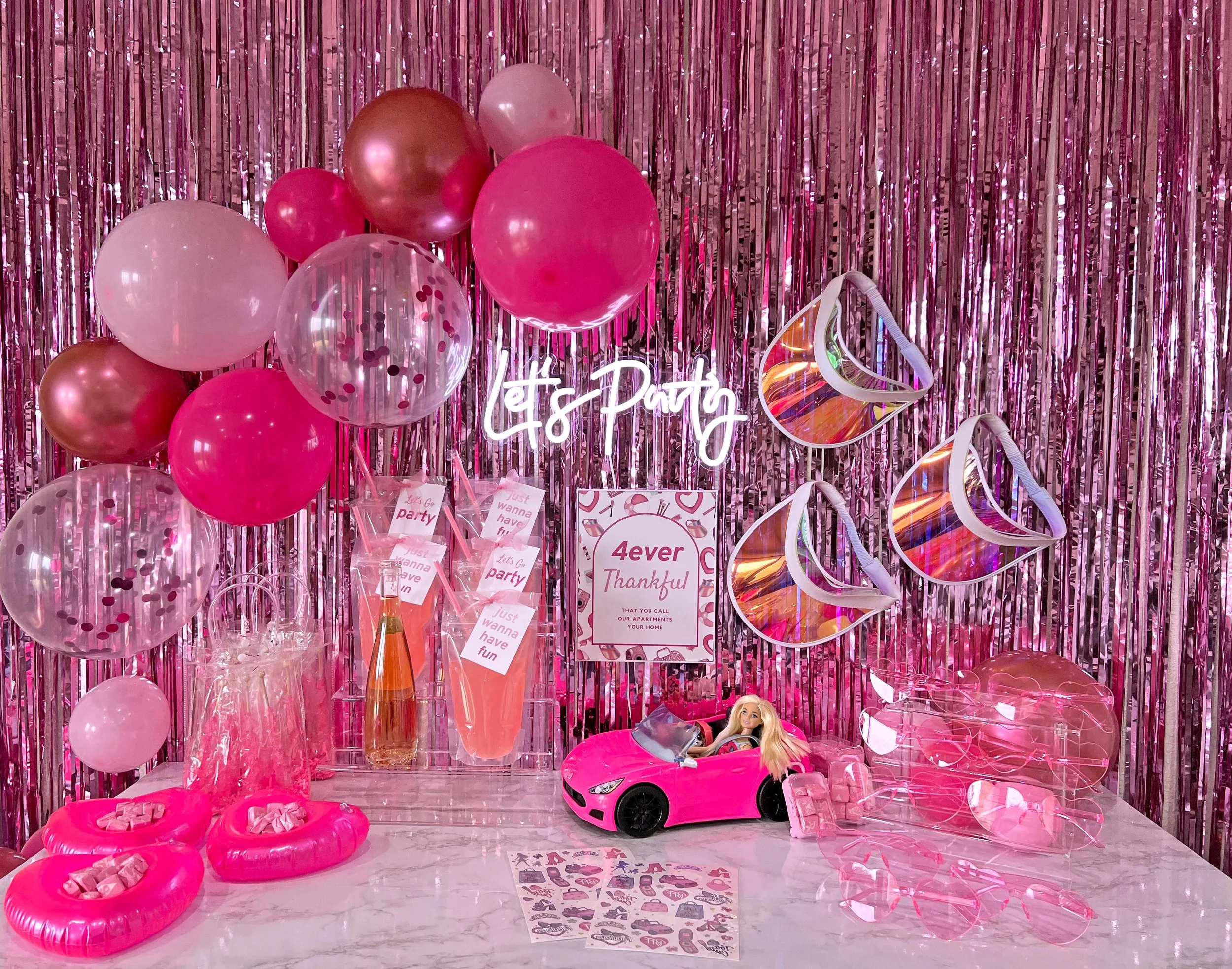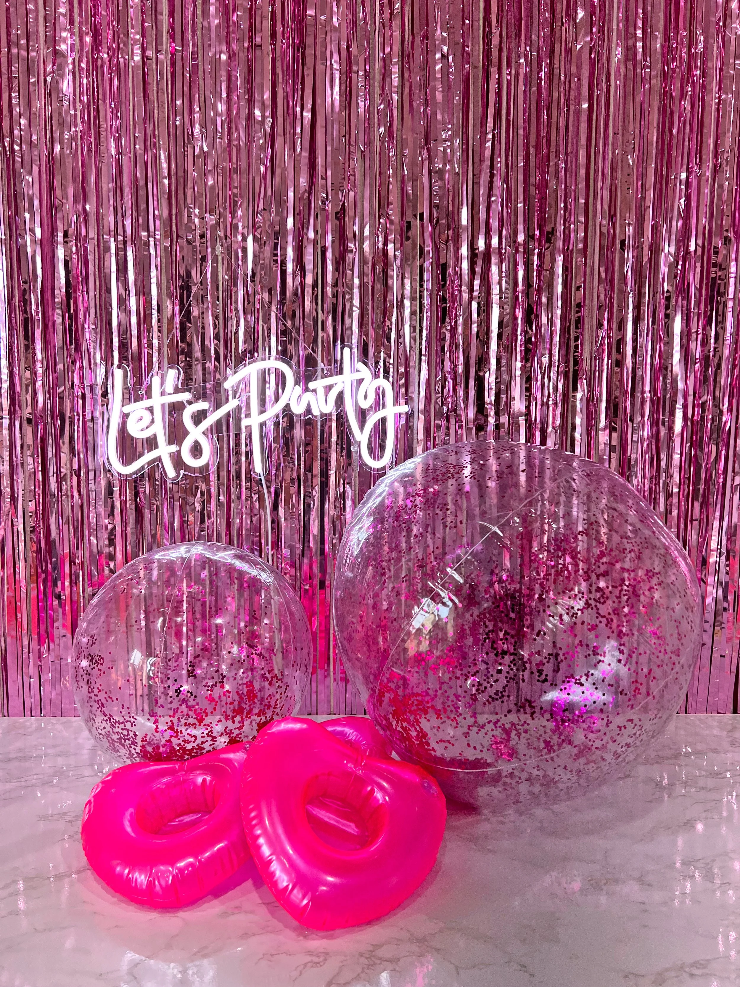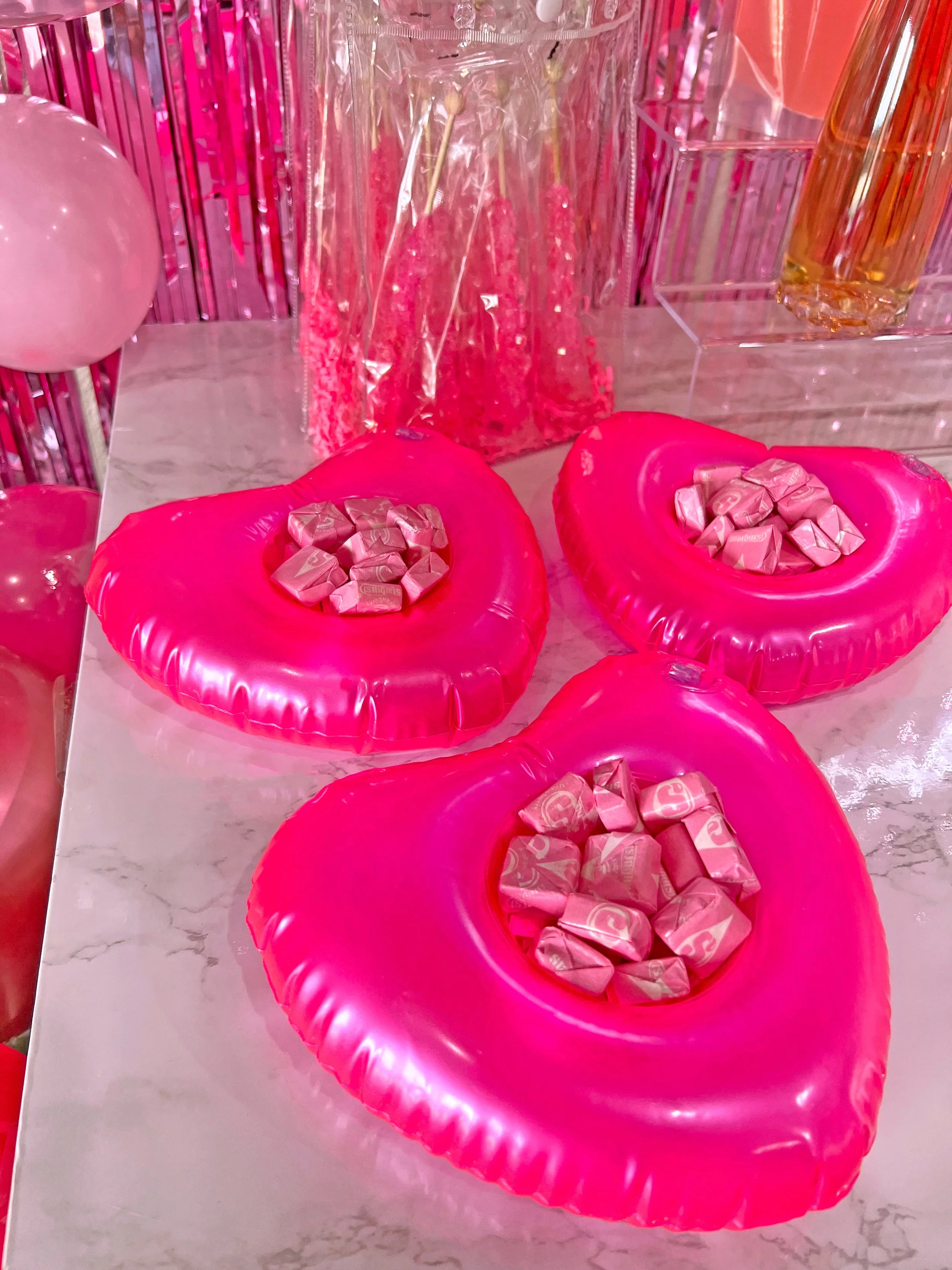 Do this outdoors or by the pool and add some beach balls, heart floats, inflatable furniture, and pink pool noodles!