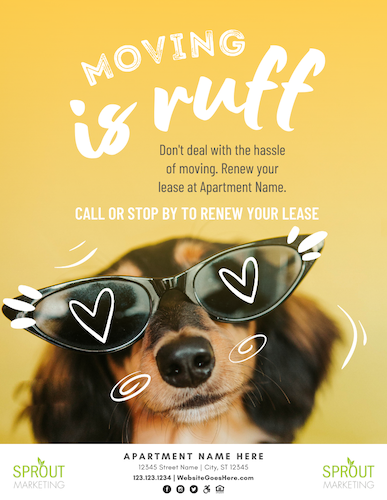 Turn your renewal reminder into something playful and pet-friendly with our “Moving Is Ruff” design.