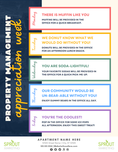 We often focus on resident retention, but what about employee retention? If you have a great team member, don’t lose them! Say thank you on Apartment Onsite Teams Day or any day of the year with these designs. See the list below for the corresponding gift idea…
