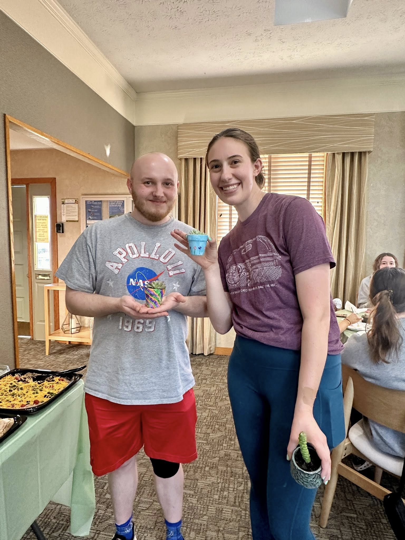 Creative Customization: Residents painted their own flowerpots before potting their new leafy roommates, adding a personal, artistic touch to the event.
